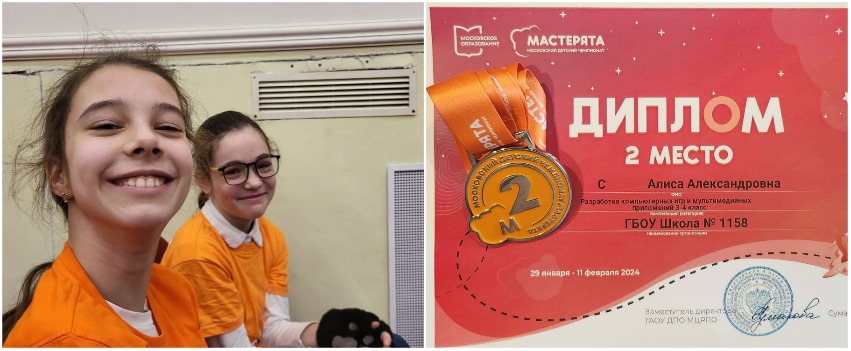 Обучающиеся кружка " Виртуальные миры" из 4 н Алиса С.и Софья Ов. (педагог Сотников Алексей Анатольевич) заняли 2 место в компетенции "Разработка компьютерных игр и мультимедийных приложений".