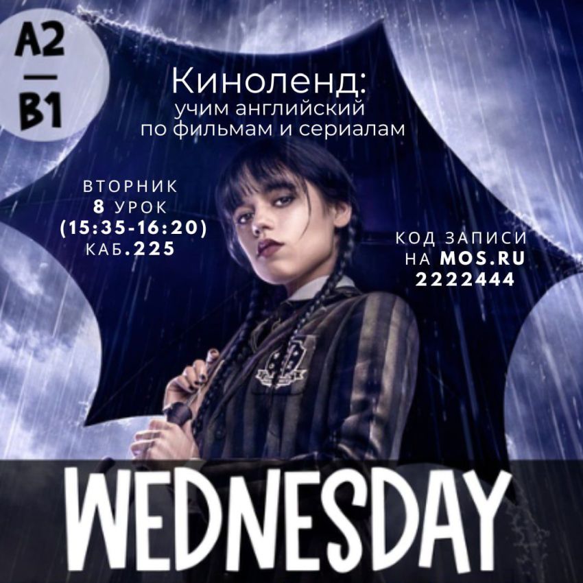 Просмотр и обсуждение сюжета сериала Wednesday, новые слова и фразы, которые обязательно пригодятся. Также вы сможете улучшить свои навыки слухового восприятия и разговорной практики в непринужденной атмосфере.