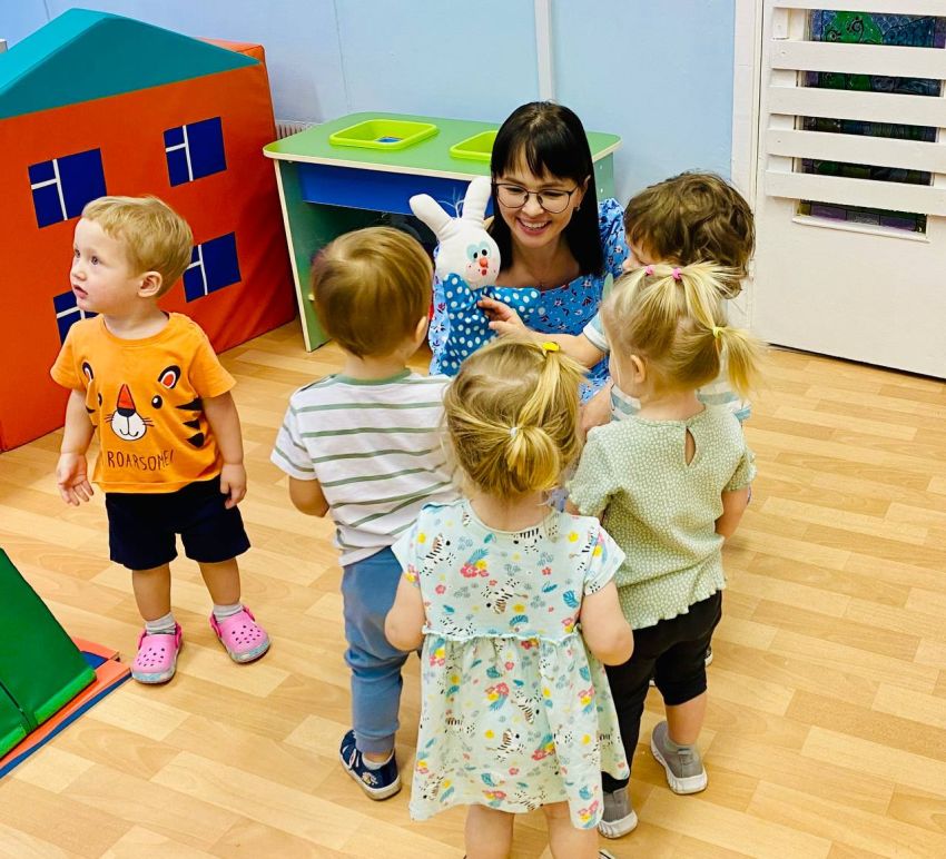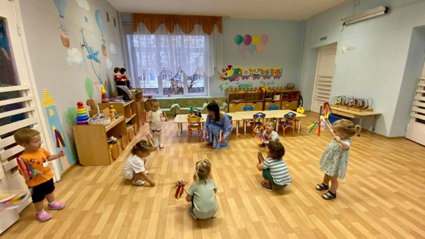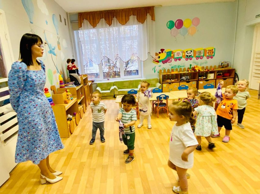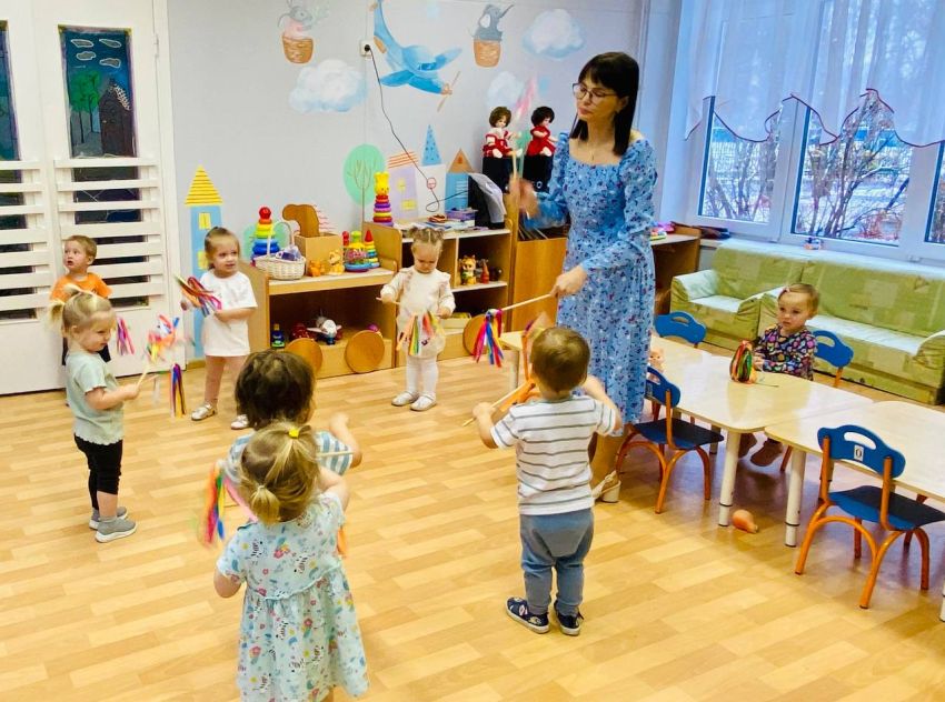 В группе кратковременного пребывания для самых-самых маленьких в здании «Мечта» музыкальные занятия под руководством Сарбиназ Рашитовны Гарафутдиновой проходят в игровой доступной для малышей форме, с привлечением разных героев. В этом возрасте музыкальные занятия в основном заключаются в звукоподражании, подпевании, а также в повторении несложных музыкально-ритмических движений (хлопки, притопы, кружение), которые очень нравятся детям. Так с самого раннего детства мы прививаем интерес и любовь к музыке, развиваем музыкальную восприимчивость и музыкальную активность наших воспитанников.
